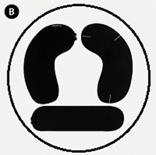 Caso opte por aquecer as bolsas no micro-ondas, sem água: abra as tiras aderentes e coloque o produto completo, três bolsas gel e suas respectivas capas, para aquecer. Centralize as peças no prato do micro-ondas (B), de modo que não fiquem dobradas ou sobrepostas. Aqueça por 30 segundos e verifique se a temperatura está confortável para uso. Caso seja necessário aquecer um pouco mais o produto, retorne as bolsas ao micro-ondas e aqueça-as em ciclos de 10 segundos, até que atinjam a temperatura ideal. O produto deve ser aquecido por completo. Não aqueça as bolsas separadamente.